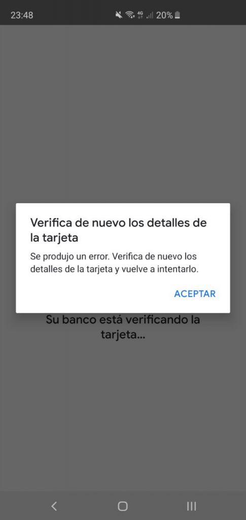 Nosotros por cuenta propia, intentamos activar una tarjeta de crédito del banco BCI, pero al momento de aceptar los «Términos del emisor», Google Pay nos arroja un error. Probablemente se deba a que el servicio aún se está activando.