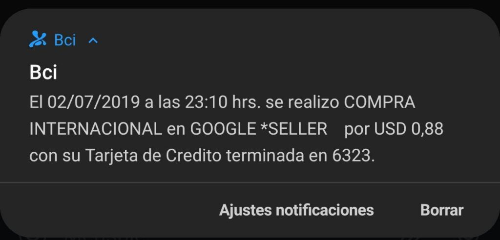 Y a la hora de vincular tu tarjeta de crédito BCI, recibirás un pequeño mensaje de verificación con un recargo que será reembolsado.