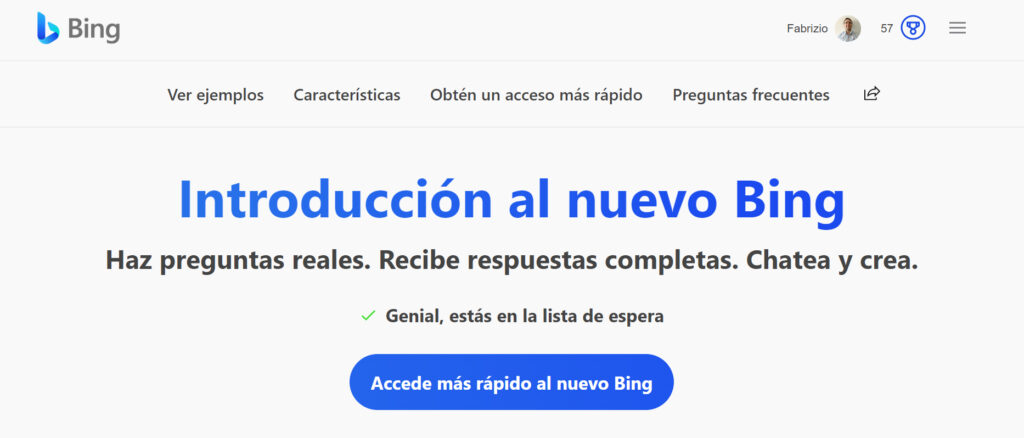 Aclaración del autor: en el artículo «Microsoft reinventa Bing y Edge de la mano de OpenAI» se colocaron ejemplos de prueba de Bing. Cuando accedí al enlace, de forma directa me indicaba «Bienvenido al nuevo Bing» (o un mensaje similar). Pero, luego de haber averiguado, leído y visto en más casos, la interfaz y respuestas son diferentes. Puede que lo mostrado en aquella nota haya estado basado en el «viejo» Bing. Lo curioso es que estaba indicado el acceso al «nuevo». No obstante, si quisiera acceder ahora (o desde hace unos días), me indica que estoy en la lista de espera (ver imagen de arriba). Queda la intriga de si en aquel momento fue un «desliz» de acceso de Microsoft. O una «combinación» de viejas y nuevas interfaces. O un error por tratarse de un lanzamiento en preview… mis disculpas personales en ello. Aquí es cuando uno queda «mareado».