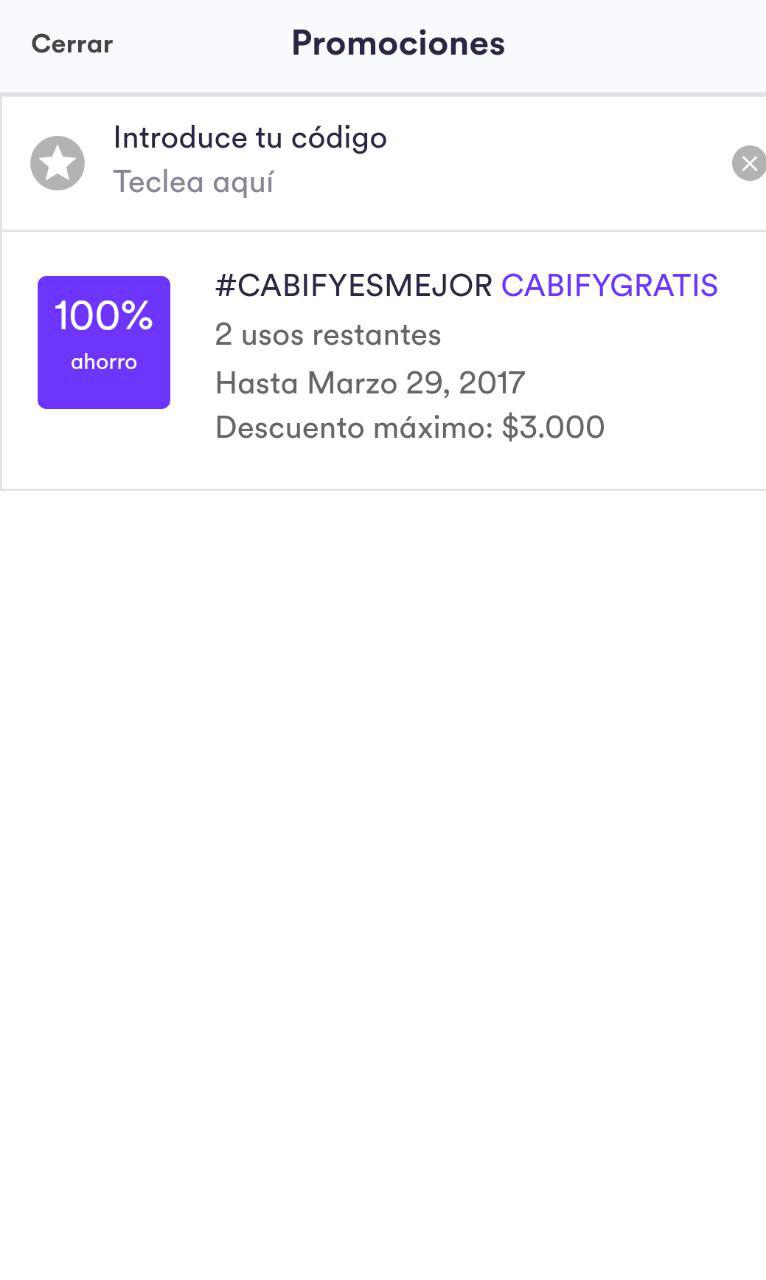 Para acceder a este descuento, debes ir a las Opciones de la aplicación, luego ir a Promociones e ingresar el código «CABIFYGRATIS», así automáticamente tendrás la promoción para tí y sólo por hoy miércoles durante todo el día, desde las 00:00 hasta las 23:59.