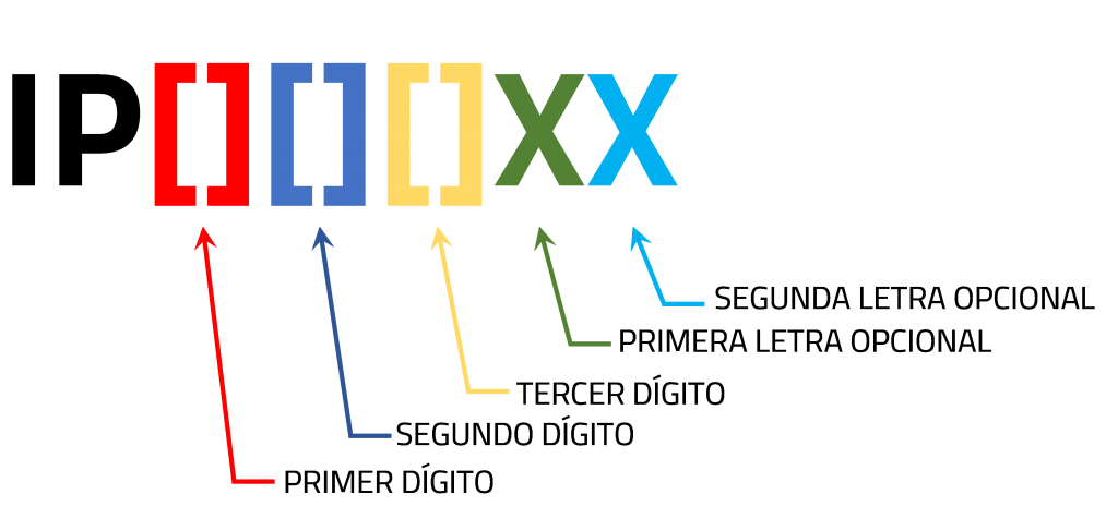 El primer dígito numérico (en color rojo), señala el grado de protección contra el polvo; el segundo en color azul, representa resistencia a la penetración del agua; y el tercer dígito en amarillo, aunque opcional mide la resistencia contra el impacto mecánico.