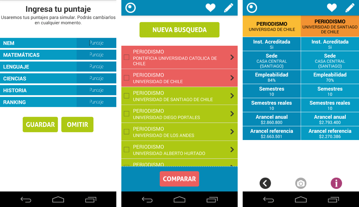 Sean universidades, centros de formación técnica (CFT) o institutos profesionales, la aplicación te permitirá comparar carreras, instituciones y aranceles, incluso, si agregamos nuestros puntajes, nos dirá a qué carreras podemos postular (obviamente basándose en los puntajes de la PSU 2013).