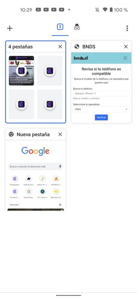 La nueva vista de cuadrícula reemplaza a la vista clásica que mostraba una imagen a pantalla completa y que podía deslizarse de forma vertical, y si bien la previsualización es más pequeña, ayuda a encontrar más rápido la pestaña que estamos buscando en caso de que tengamos muchas abiertas. Además, las ventanas en el modo incógnito ahora tienen una vista independiente y se puede cambiar fácilmente desde la parte superior.