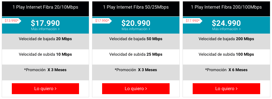 Nuestra oferta parte con una velocidad de bajada de 20 Mbps y 10 Mbps de subida, para usuarios con menores necesidades de consumo más acotadas y un precio promocional desde los $13.990 por tres meses; hasta velocidades de 200 Mbps de bajada y 100 Mbps de subida para usuarios más intensivos, considerando que lo que más consumen las personas en sus hogares son servicios de video en streaming como Claro video, sumado a múltiples dispositivos conectados simultáneamente. Por ejemplo, visualizar una película en streaming requiere una velocidad de bajada de 5 Mbps promedio por usuario conectado.