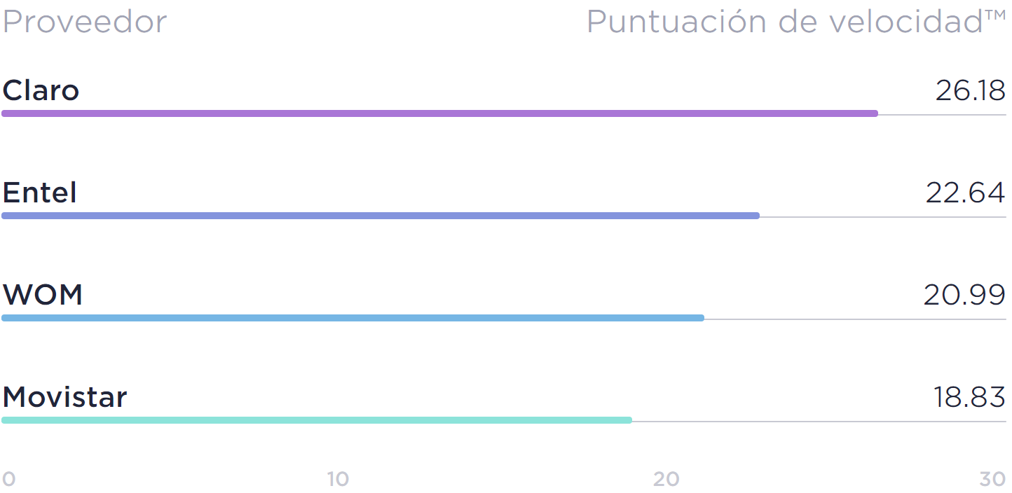 Speedtest Intelligence ha revelado que el operador Claro Chile fue el más rápido durante el cuarto trimestre del 2021 con un Speed Score de 26.18. El último lugar lo ocupa Movistar con 18.83.