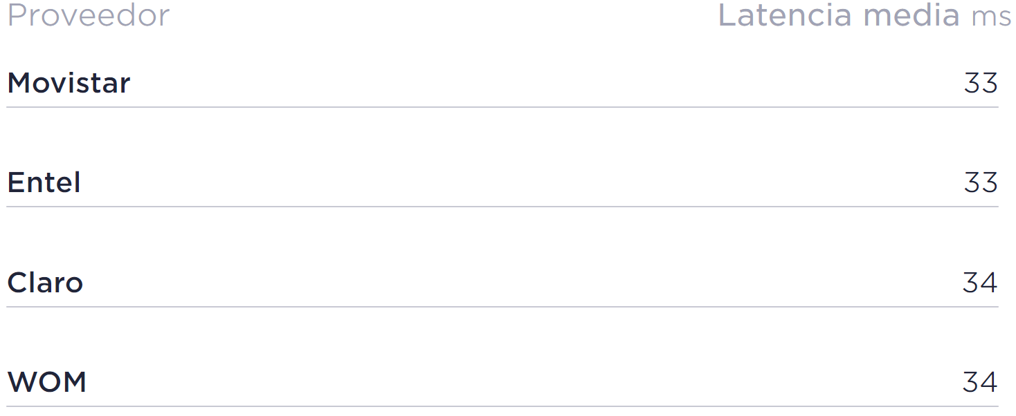 Por acá tenemos al operador que menos latencia ofreció en su red móvil en el cuarto trimestre del 2021. Movistar y Entel tuvieron la cifra más baja con 33 ms.