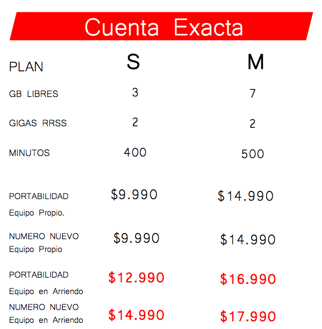 Ahora encontraremos mejoras en los planes Cuenta Exacta en donde tenemos más minutos en el Plan S y más gigas libres en el Plan M y S.