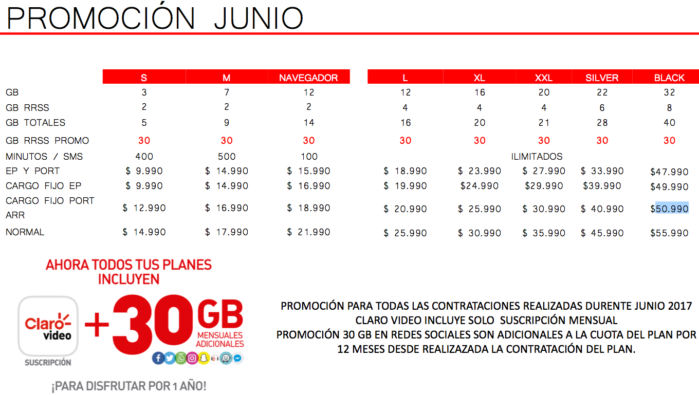 Si sumamos las mejoras anteriores, así quedaría la oferta comercial actual de Claro, la cual es válida solo por el mes de junio: