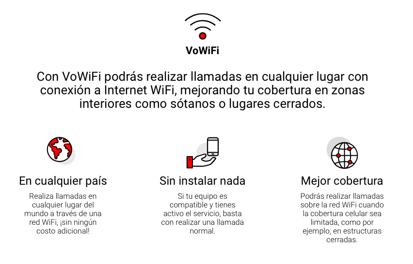 En el caso del servicio VoWiFi (Llamadas Wi-Fi), lo podrás usar en cualquier parte del mundo donde exista una conexión Wi-Fi con internet.