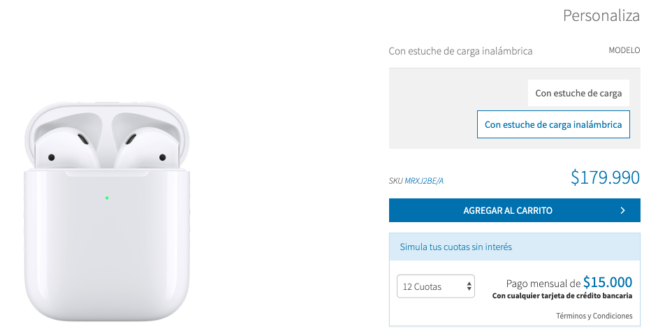 Dicha preventa se realiza a través de MacOnline quienes te darán la oportunidad de acceder a los nuevos AirPods con carga inalámbrica por CLP$179.990, mientras que los AirPods de primera generación que no incluyen carga inalámbrica costarán CLP$149.990.