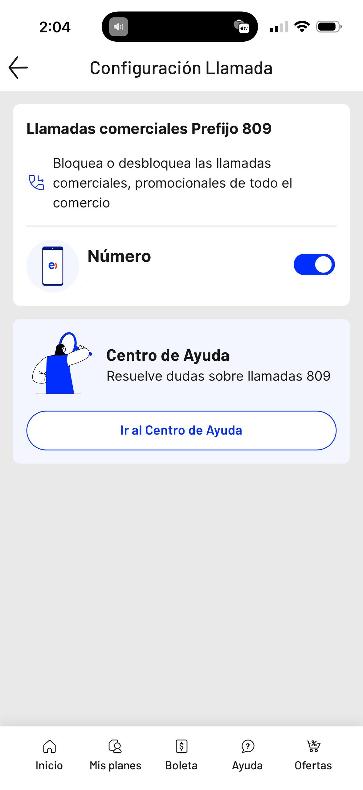 - Ingresa al número de teléfono o línea telefónica para el que no quieras recibir llamadas desde los prefijos 809 desde la misma app