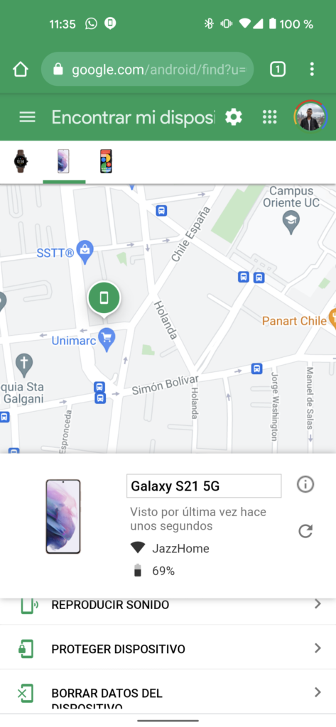 Una vez que hayas accedido a tu cuenta, en el teléfono perdido aparecerá una notificación informando que el teléfono ha sido localizado, mientras que en el sitio web de Encontrar mi dispositivo podrás ver un mapa de la ubicación donde por última vez fue localizado el dispositivo.