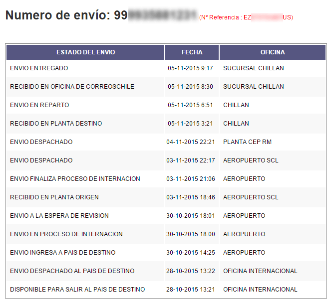 Por otra parte, USPS ofrece una gran variedad de envíos. Si utilizan alguno de los más rápidos también podrán tener información oportuna, tanto en la página postal norteamericana como en Correos de Chile una vez que ingrese al país.