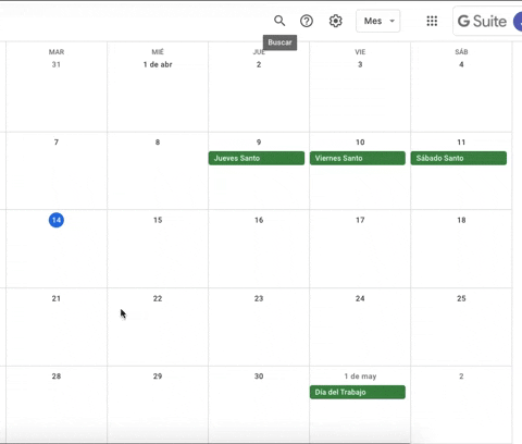 - Google Calendar: Si necesitas fijar tus reuniones o clases con anticipación y eres el anfitrión de una de estas, puedes iniciar la videoconferencia desde tu calendario de Google. Para esto nos vamos a dicha aplicación y creamos un evento -con la sesión G Suite iniciada-. Cuando estamos creando el evento debemos agregar a los invitados, al seleccionarlos automáticamente se activará la parte de «Unirse a Hangouts Meet», donde se te entregará el link de la sesión, aunque igual te avisará cuando sea el evento.