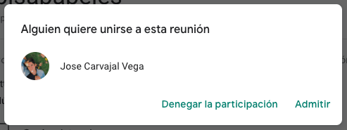 - Link compartido: Si te fijas en la imagen anterior, aparte del número y PIN, Meet también nos permite compartir un link, al cual podrán acceder nuestros invitados. Lo único malo de esta opción es que una vez dentro, nos llegará una notificación para que permitamos el acceso, por lo que si tu reunión va a ser masiva, quizás esta no sea la mejor opción.