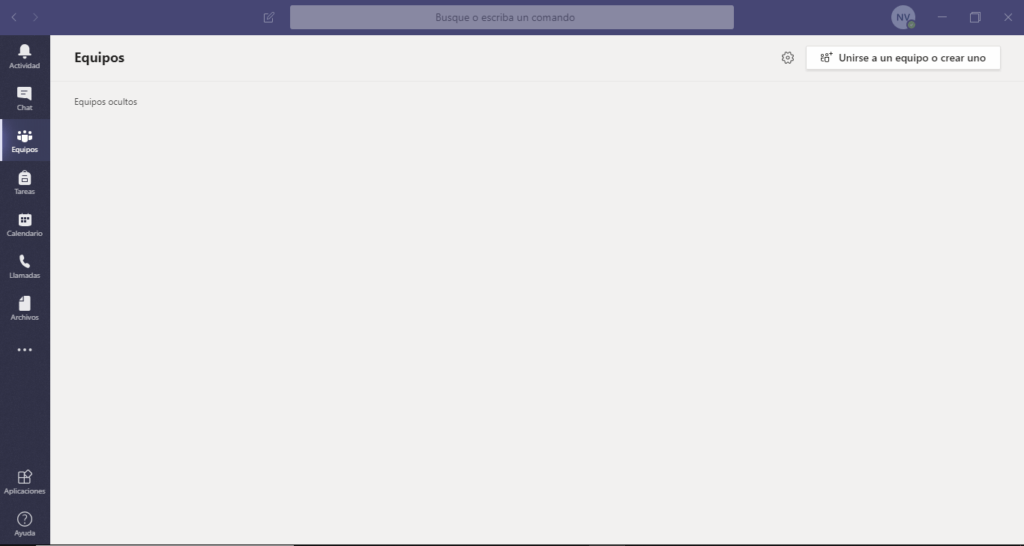 La parte esencial de Teams son los equipos. Para crear uno, debemos acceder a la sección «Equipos», dirigirse a la parte superior derecha, y pinchar en donde dice «Unirse a un equipo o crear uno». Posterior a esto, se nos dará a escoger alguna de esas opciones.