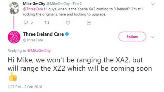 Pero ayer, la compañía irlandesa Three ha revelado mediante su servicio al cliente oficial en Twitter que uno de los nuevos dispositivos de Sony, el XZ2, se acerca a pasos agigantados a su presentación oficial.