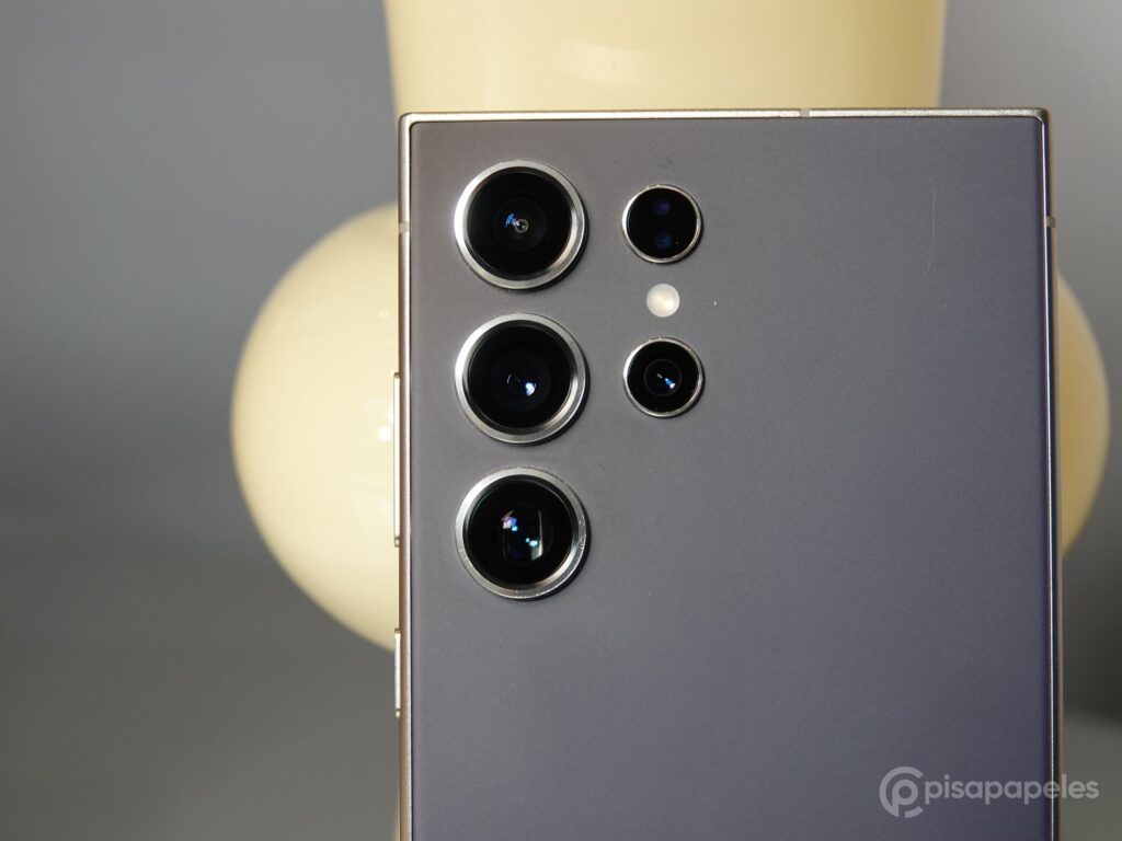 La parte trasera también se diferencia por el cuerpo de cámaras. Acá el Galaxy S24 Ultra distingue por tener 4 cámaras más un sensor láser para autoenfoque (AF). Este último hace parecer que fueran cinco las cámaras, respecto las tres cámaras que poseen el S24 Plus y el S24 regular.