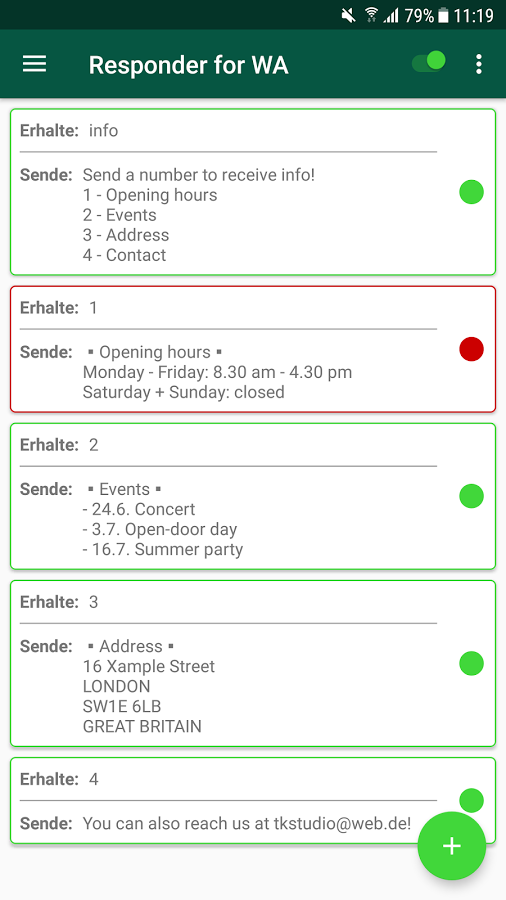 Con el nombre de AutoResponder for WhatsApp, la app te ofrecerá la posibilidad de enviar respuestas automáticas que podrás enviar a grupos, contactos individuales o incluso a ambos, así como también podrás configurar respuestas a mensajes concretos.