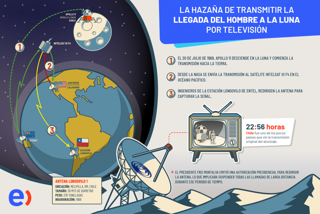 Si quieres saber más sobre la historia de Longovilo y la transmisión del alunizaje, te recomendamos ver este sitio que Entel preparó con motivo del aniversario de la misión lunar.