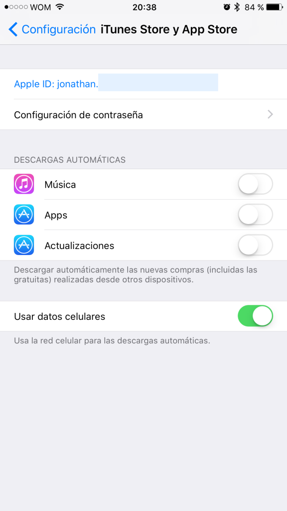 Ahora, nos vamos a nuestro iPhone, seleccionamos Configuración, luego elegimos «iTunes y App Store», seleccionamos sobre nuestro actual Apple ID y elegimos «Desconectarse». Luego seguimos los pasos para iniciar sesión con nuestra Apple ID gringa que hicimos.