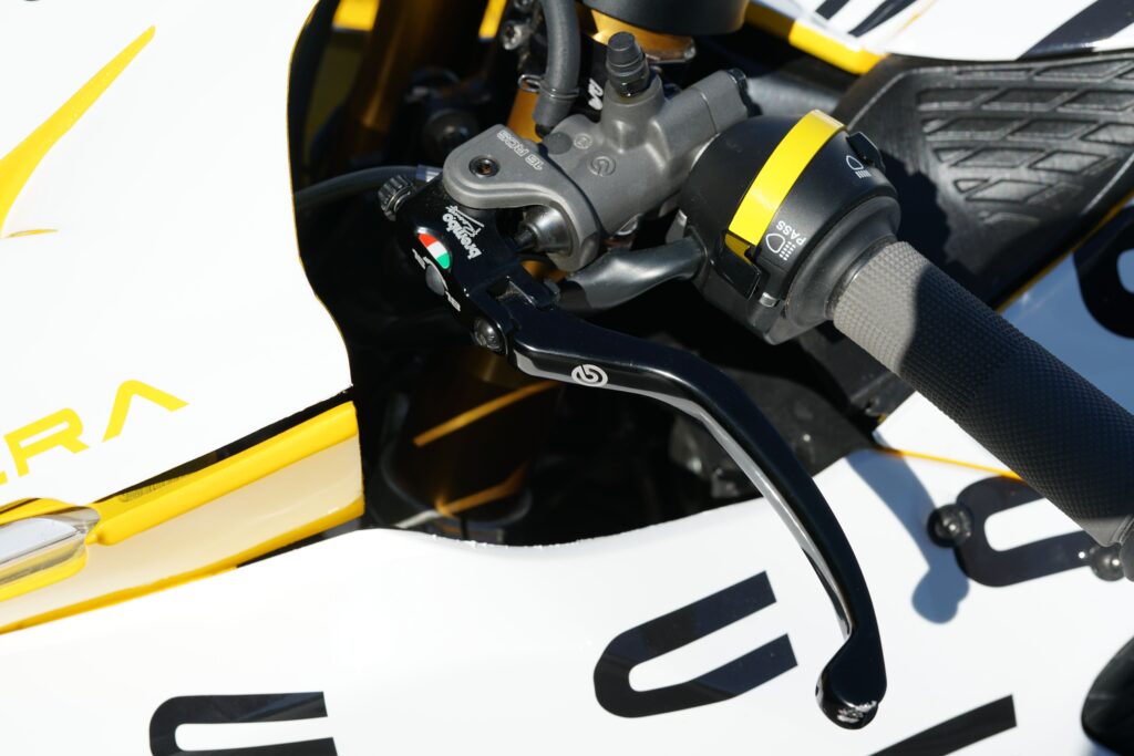 Sobre esto último, la moto ajusta automáticamente la posición del manillar y las pisaderas o apoya pies. El propósito es adoptar un modo de conducción más cómoda o un modo de conducción más deportivo cuando sea necesario.