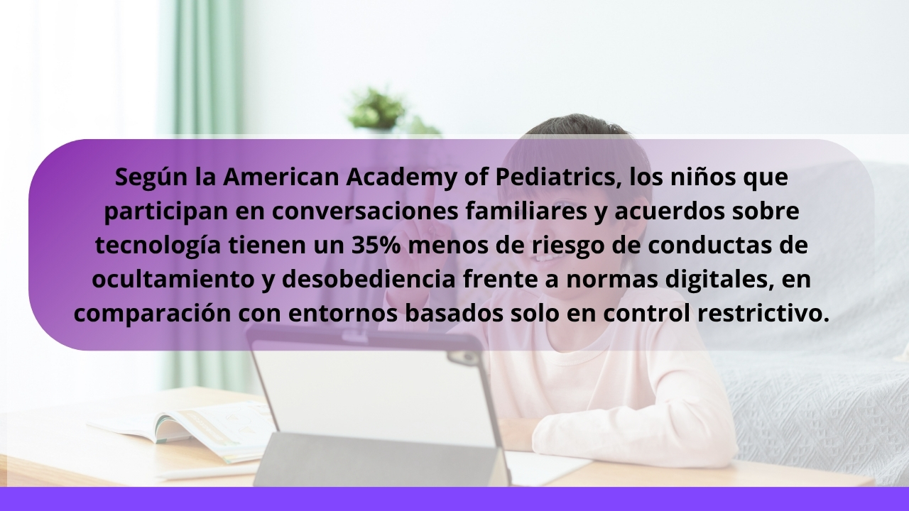 «El enfoque conversacional ofrece ventajas claras frente a métodos exclusivamente restrictivos. En vez de imponer reglas que generan resistencia y ocultamiento, el diálogo permite que los niños internalicen el sentido de las normas y aprendan a autorregularse».