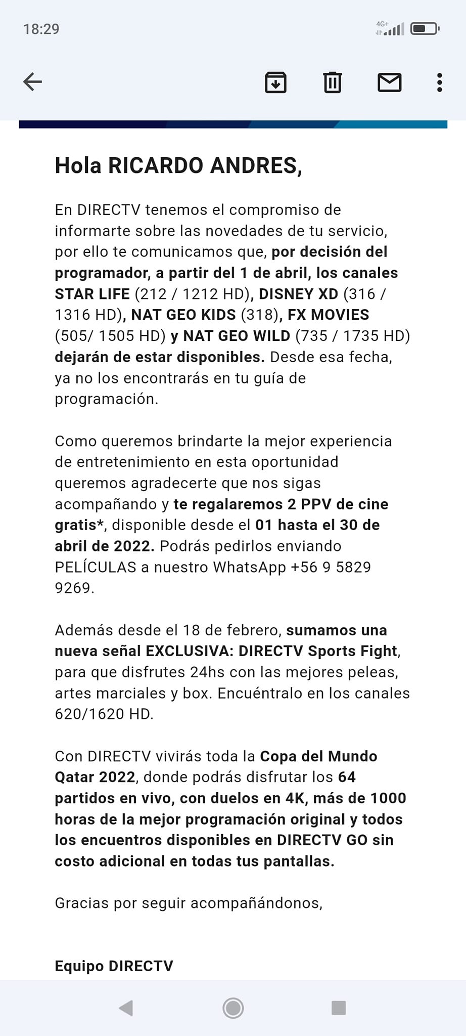 Por medio de un email, DIRECTV informa que los siguientes cinco canales dejarán de estar disponibles el 1 de abril: