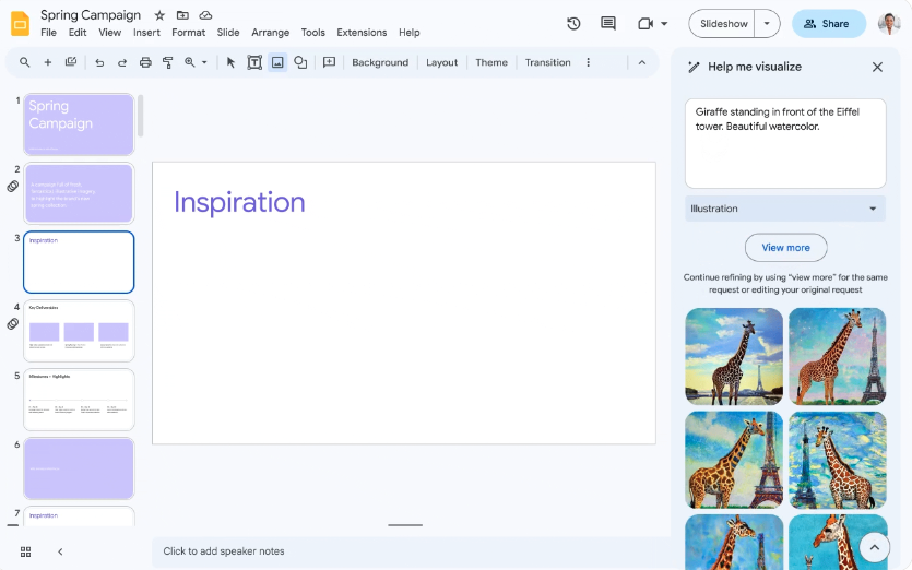 En Gmail y Docs, Duet será capaz de generar un borrador de texto en base a un prompt que le entreguemos, o según el contexto que tenga (por ejemplo, en caso de querer redactar una respuesta a un correo). En Slides, este asistente podrá generar imágenes y diseños de presentaciones en base a las instrucciones que nosotros le entreguemos.