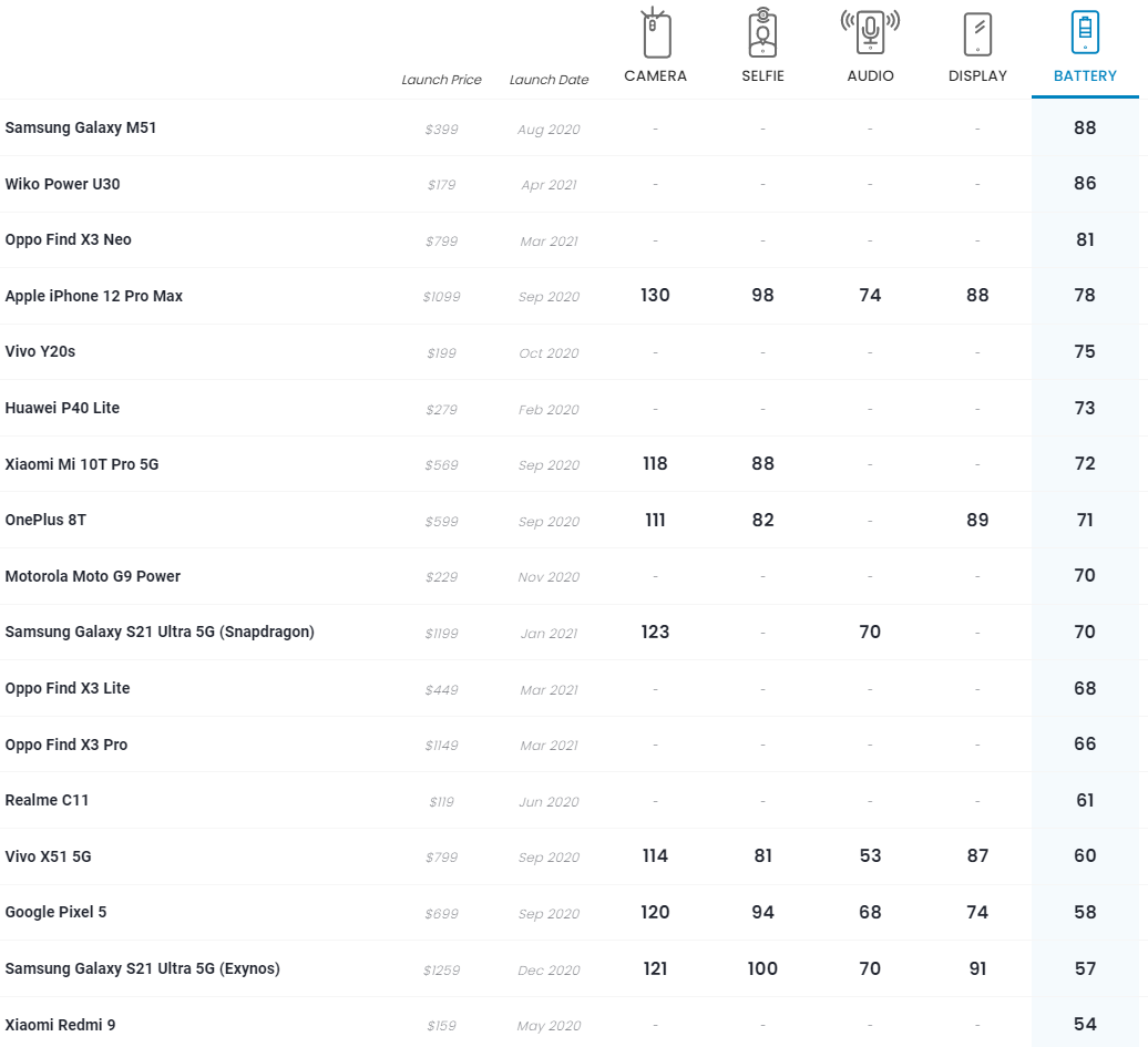Pues bien, DxOMark ya ha liberado el ranking de dispositivos que fueron testeados especialmente para conocer qué tal se comportaba su autonomía en general.
