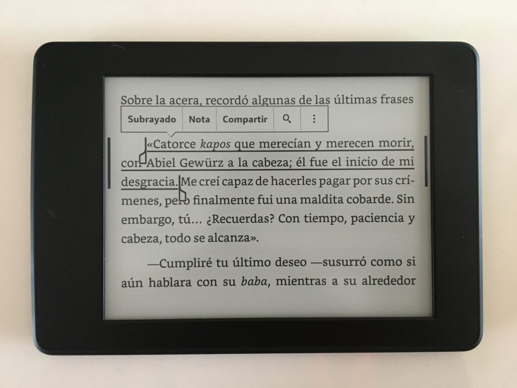 Resaltado, subrayado y notas digitales: Facilitan la tarea de resaltar, subrayar y tomar notas en el texto de manera digital. Con solo tocar y deslizar el dedo sobre una parte del texto, es posible resaltar o subrayar palabras, frases o párrafos importantes. Además, se pueden añadir notas personalizadas, lo que resulta especialmente útil para aquellos que desean estudiar o analizar un libro en particular. Estas funciones permiten organizar y acceder fácilmente a las ideas clave y reflexiones sin necesidad de utilizar lápiz y papel.
