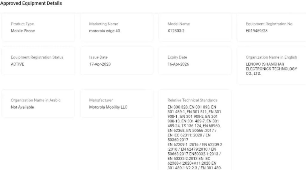 Más allá del tema del SoC, el lanzamiento del producto estaría cerca. Aparecer por dos certificaciones de distintos países es un indicio de ello. Más si consideramos el tiempo de filtración. Y también el hecho de ya conocer a su «hermano mayor» (Edge 40 Pro).