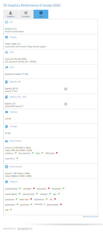 En base a lo que dice el benchmark, el gadget protagonista de esta nota se encuentra identificado bajo la nomenclatura Alcatel 6060.