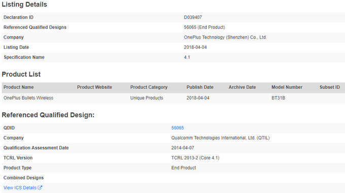 Se trata de los denominados Bullets, los que hasta el momento existen hasta la generación V2, pero que con la presentación del OnePlus 6 se actualizarían, según se puede ver en la agencia certificadores de dispositivos Bluetooth, donde los audífonos hicieron su aparición.