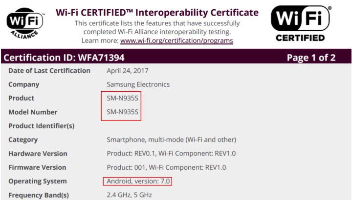 Pero también sucedió otra cosa que nos llama mucho la atención, ya que el modelo original del Note 7 que conocemos como SM-N930F fue certificado nuevamente en la Alianza Wi-Fi, dándonos a pensar que quizás el primer modelo — SM-N935S — sea un modelo Plus como sucede en la actualidad con el Galaxy S8.