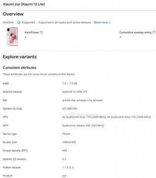 Y según podemos ver en MySmartPrice, el dispositivo apareció en la Google Play Console bajo el nombre clave de Ziyi, y como podemos ver en la imagen, el equipo no será otro que un Xiaomi Civi 2 pero con otro nombre.