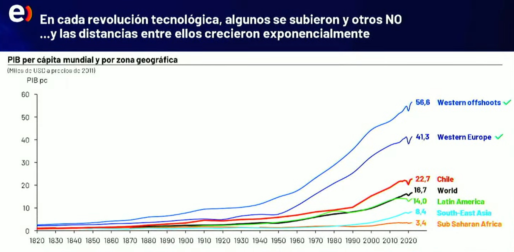 «Hay países que lograron multiplicar por diez su ingreso per cápita gracias a la innovación, mientras otros apenas avanzaron. La diferencia no estuvo en la tecnología disponible, sino en la capacidad institucional para aprovecharla«.
