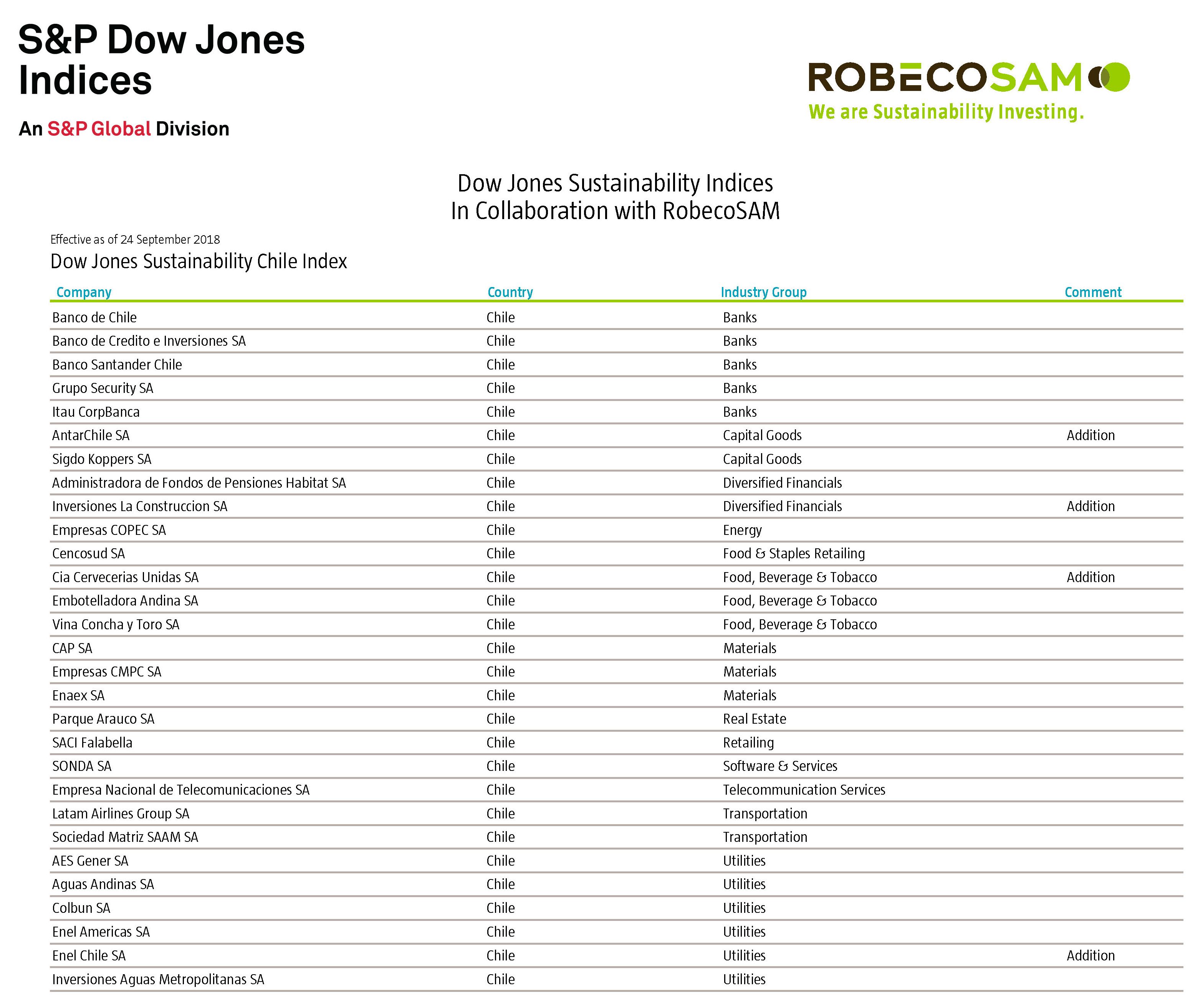El DJSI es un instrumento de medición mundial que permite reconocer a las empresas que más aportan al desarrollo sustentable. Es decir, este índice permite valorar las buenas prácticas de la industrias en tres ámbitos diferentes: aporte social, medioambiental y económicos. Hoy por hoy, esta medición se ha transformado en un indicador clave para los inversores que tienen presente la sustentabilidad entres sus principios empresariales.