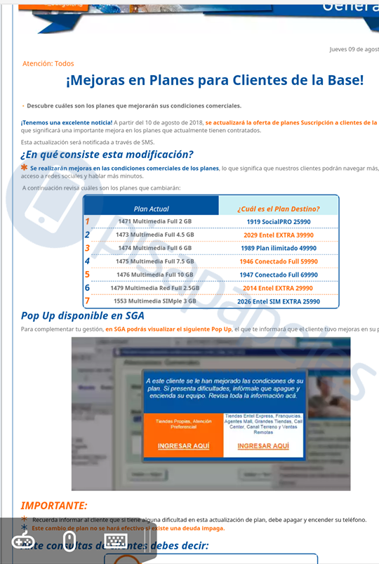 Gracias a nuestro informante anónimo, hemos accedido a una información que está entregando Entel en donde se informa que aquellos clientes que cuenten con los antiguos «planes multimedia», serán actualizados a uno de sus planes actuales.