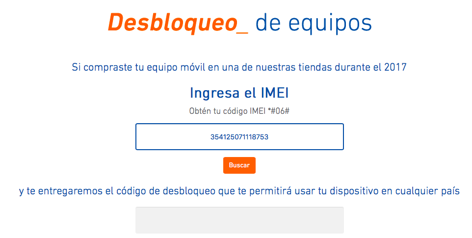 Al final de este post encontrarás el acceso directo a esta web especial de Entel en donde solo deberás ingresar el IMEI de tu equipo para solicitar el código de desbloqueo internacional. El IMEI se obtiene marcando el *#06#.