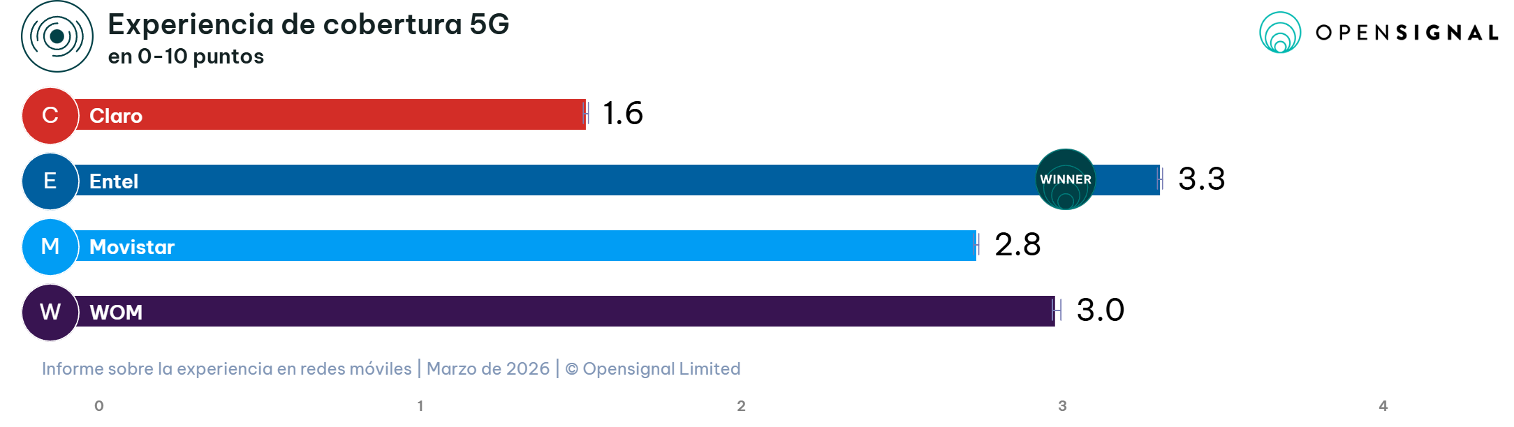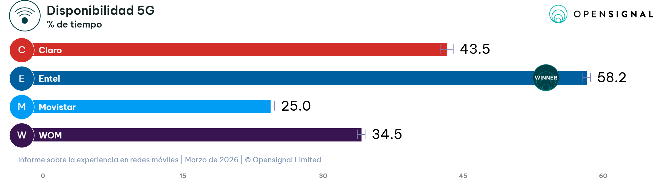 - Disponibilidad 5G: Entel toma el liderazgo, superando a WOM (ganador en 2025).