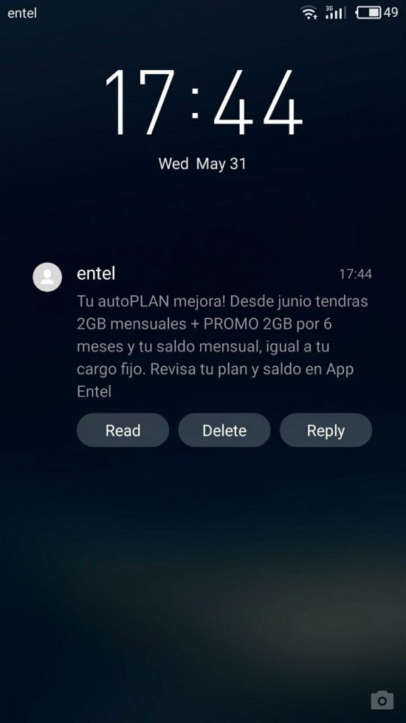 Durante el día el operador té enviará un SMS informando sobre los cambios que se realizarán en tu autoPLAN, igual o similar al que verás a continuación: