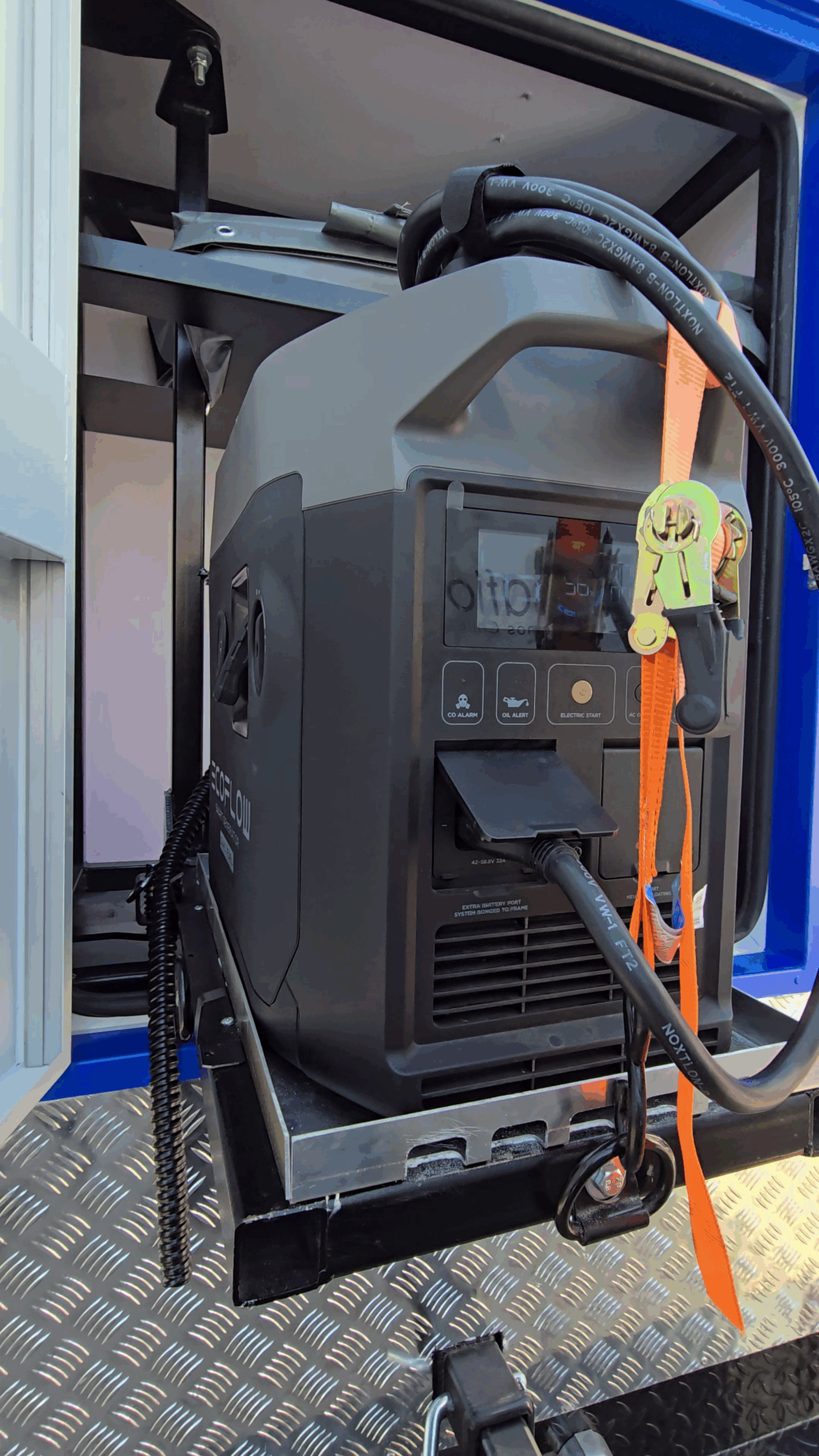 Como apoyo, el equipo está pensado en que cuente una estación de carga portátil EcoFlow con baterías de litio ferro fosfato (LFP).