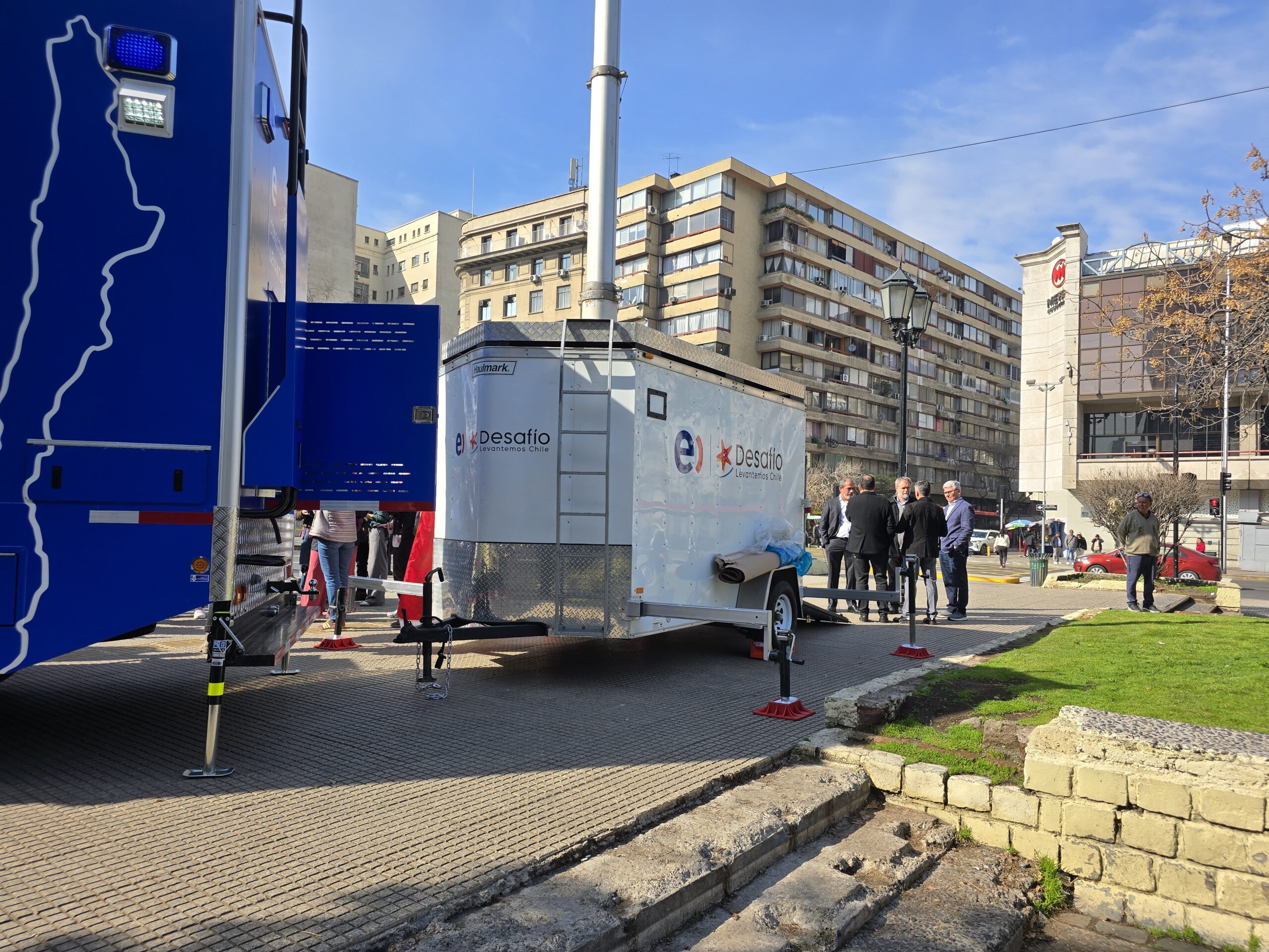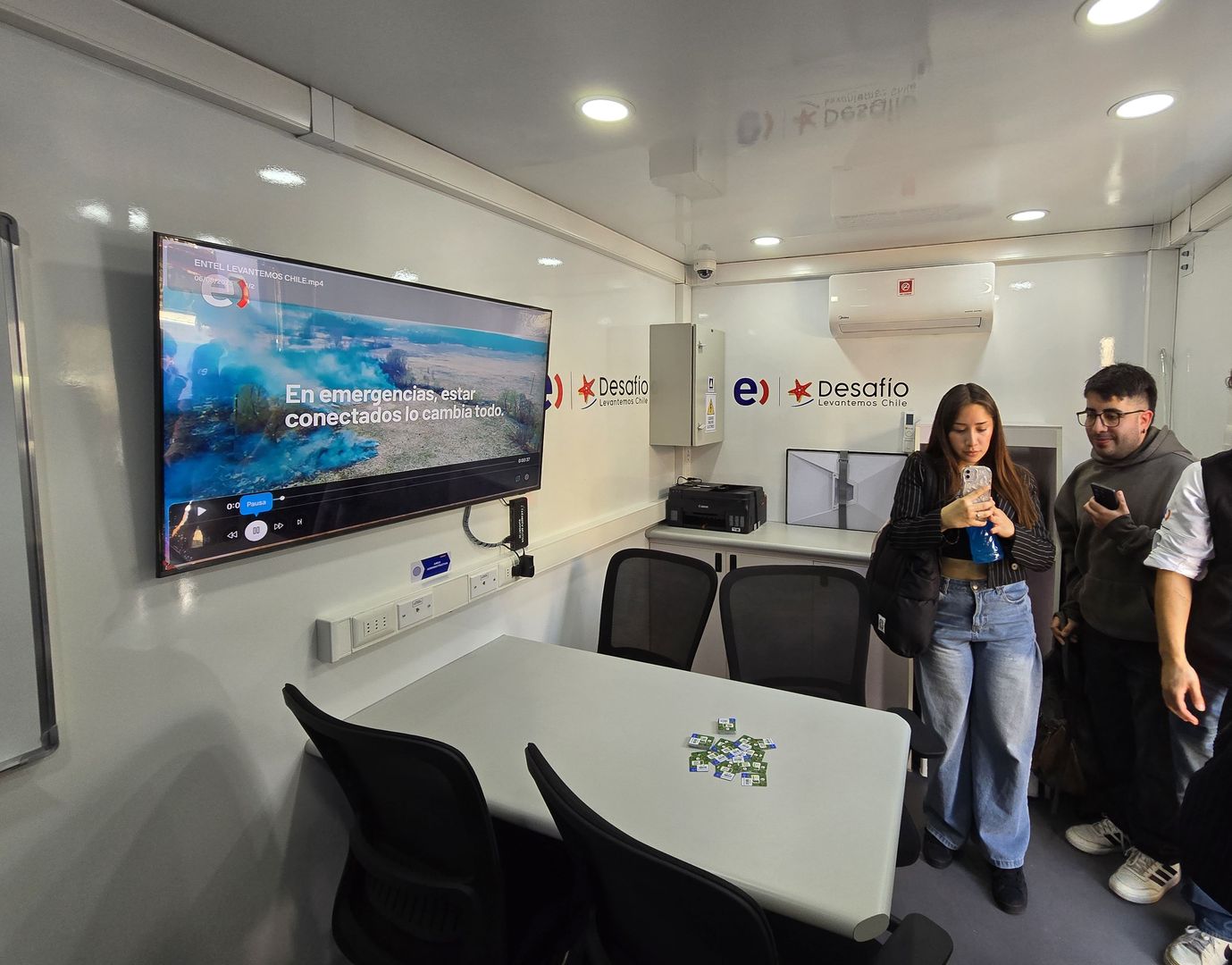Entel y Desafío Levantemos Chile lanzaron el primer centro de operaciones para emergencias móvil con conectividad satelital, que consiste en un camión todoterreno y un carro técnico de arrastre, que contiene prácticamente todo lo que tiene una radiobase, pero es móvil.