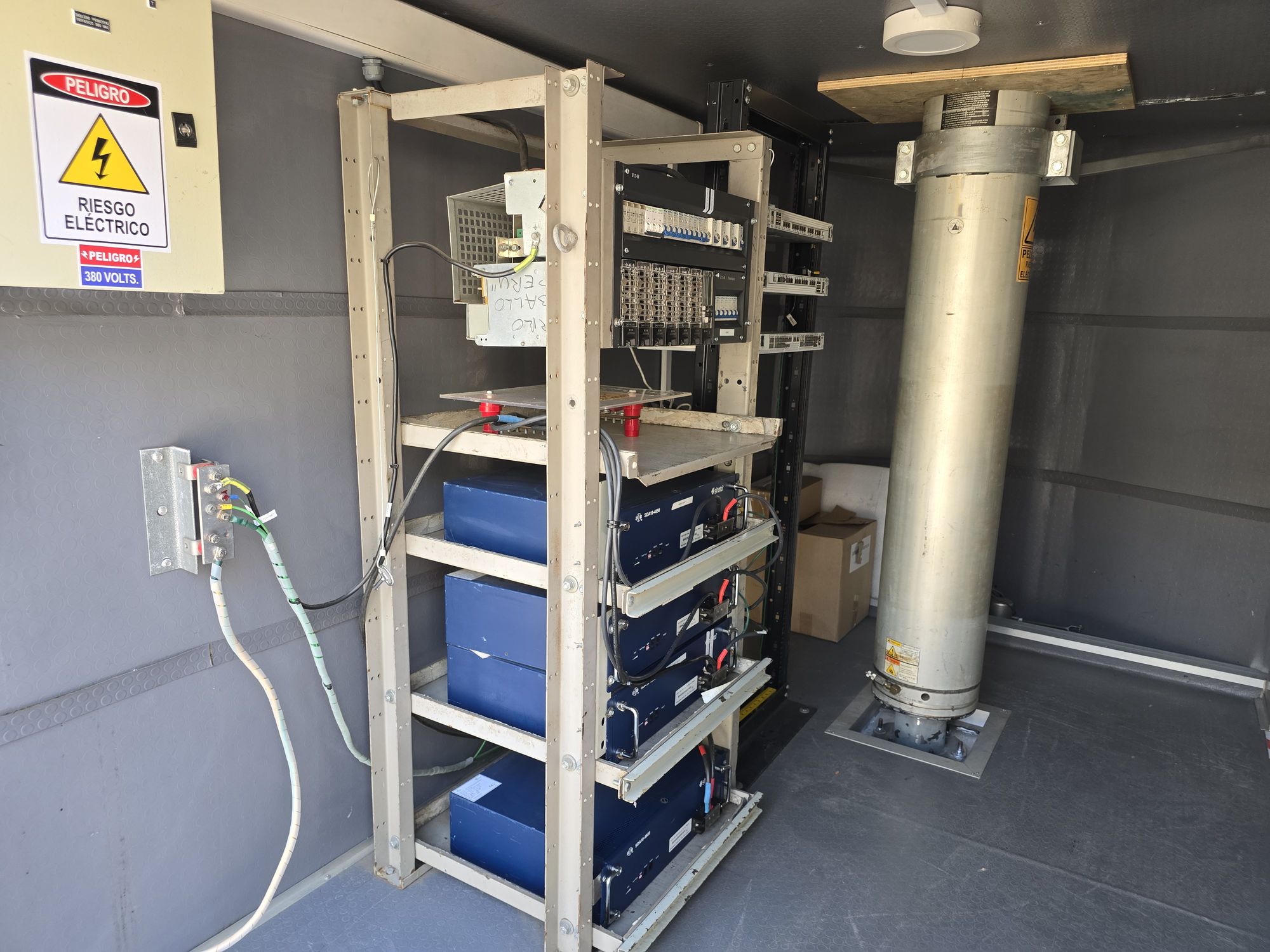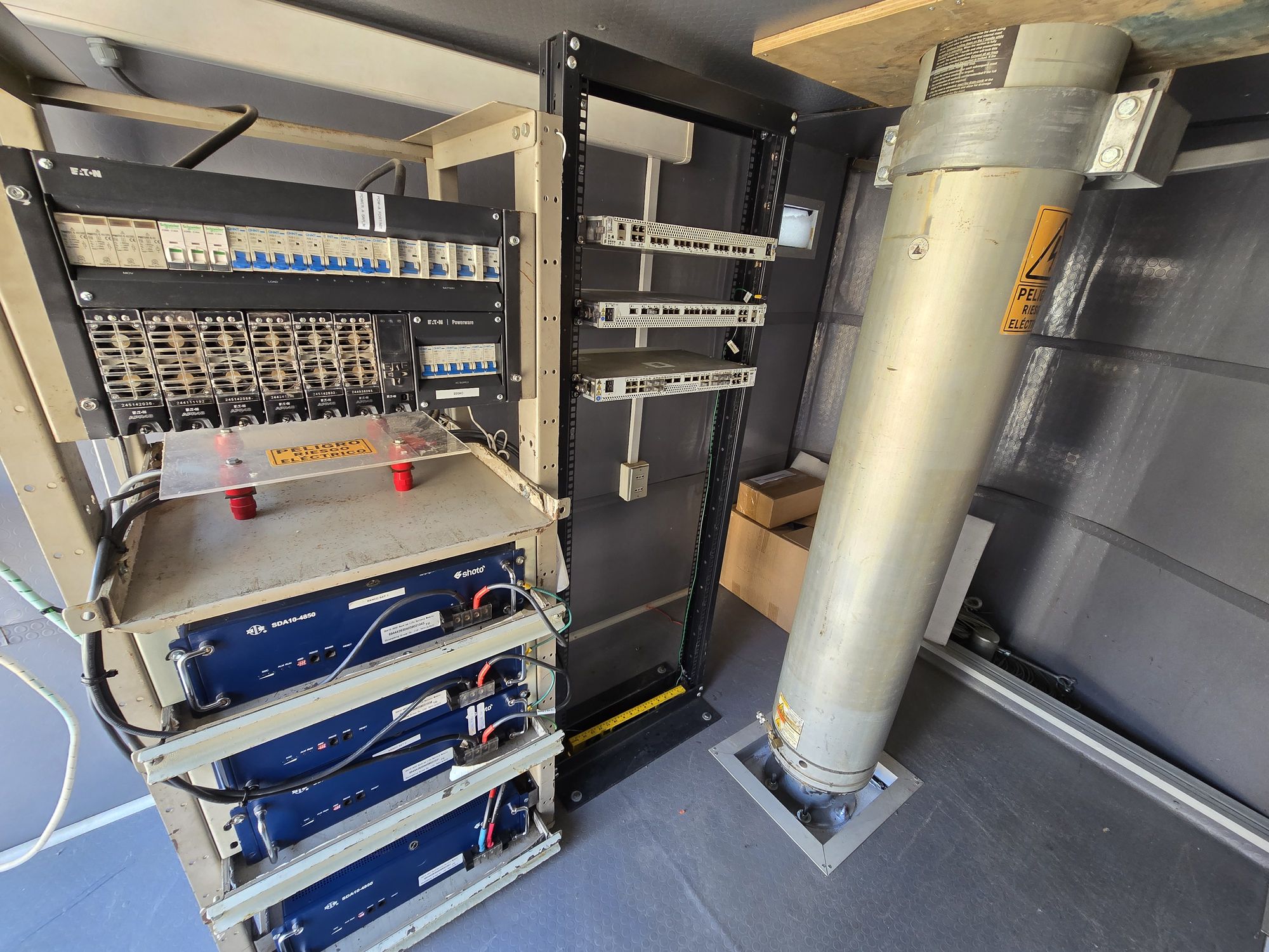 Durante la presentación, se mostró una maqueta con partes del equipamiento en su interior como: equipo de redes, baterías de litio, tablero eléctrico, y desde luego una antena plegable hasta 15m de altura, coronada con una antena Starlink, que trabajaría como backhault.
