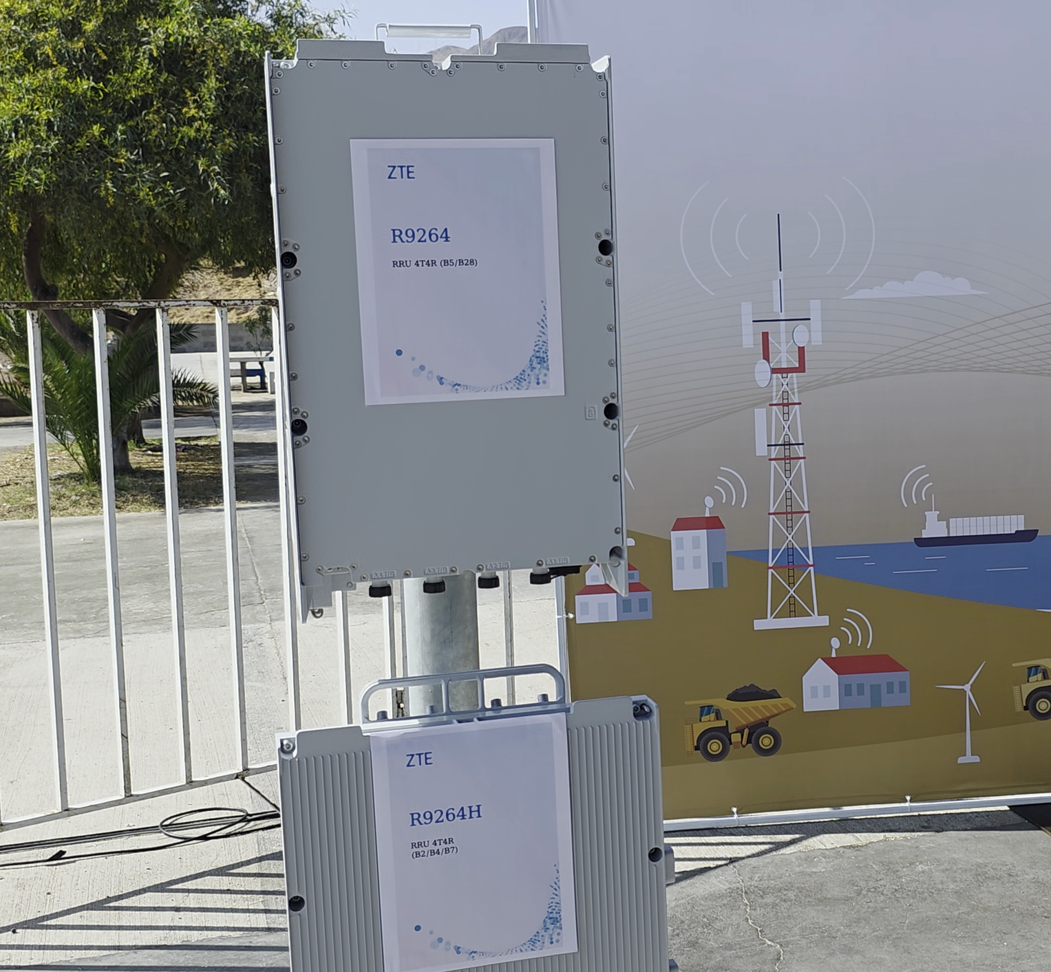 En la capa 4G, se desplegaron RRUs 4T4R multibanda como la ZTE R9264H, que soporta B2 (1900 MHz), B4 (AWS) y B7 (2600 MHz). Este tipo de radio remota mejora el rendimiento mediante agregación de portadoras y MIMO 4×4. Complementariamente, la ZTE R9264 opera en B5 (850 MHz) y B28 (700 MHz), cubriendo áreas rurales o con necesidades de penetración en interiores.