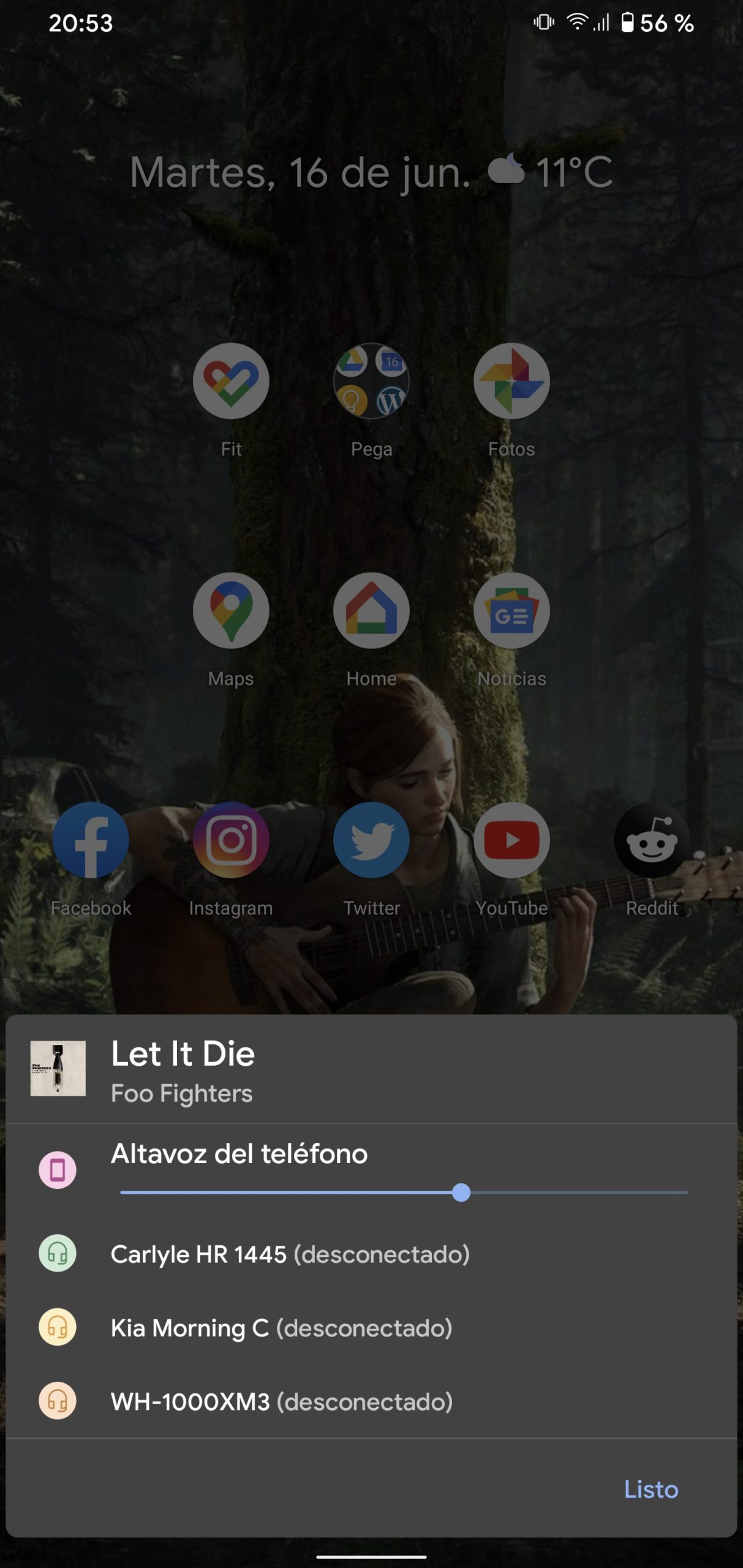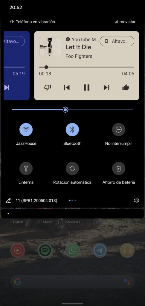 Cuando tenemos más de una aplicación de medios activa, en el panel de ajustes rápidos se nos mostrará todo lo que estamos reproduciendo en formato horizontal y estas tarjetas tienen dos novedades, la primera es que su color se adapta a la carátula del álbum, película o serie que estemos reproduciendo y la segunda y más importante, es la opción de poder seleccionar en que dispositivo Bluetooth o WiFi quieres que se reproduzca. Aunque por ahora, esta opción no muestra los dispositivos conectados a nuestro hogar, como pueden ser parlantes Google Home o Nest y solo aparecen en el listado los dispositivos Bluetooth.