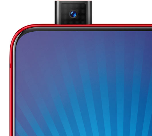 En el frontal del primer render apreciamos una pantalla que prácticamente no presenta bordes. Pero sí vemos un sistema que hará emerger la cámara frontal de 32MP desde el borde superior. Es una jugada similar al actual Vivo NEX S.