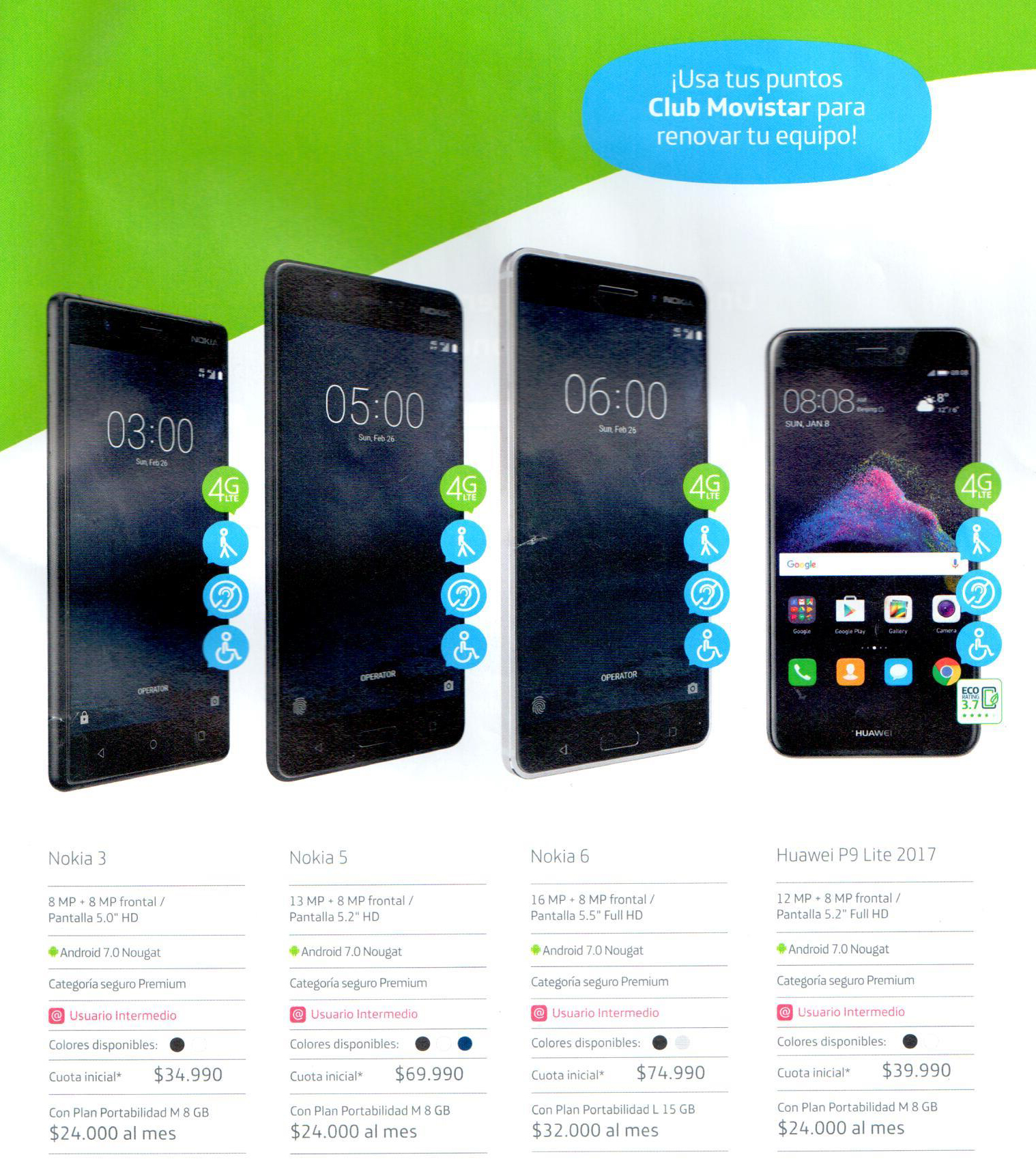 Según la información entregada por dicho catálogo, el Nokia 3 podrás adquirirlo por $34.990 contratando un plan portabilidad de $24.000. El Nokia 5 tendrá un valor de $69.990 con un plan portabilidad de $24.000, mientras que el Nokia 6 costará $74.990 al contratar un plan portabilidad de $32.000.