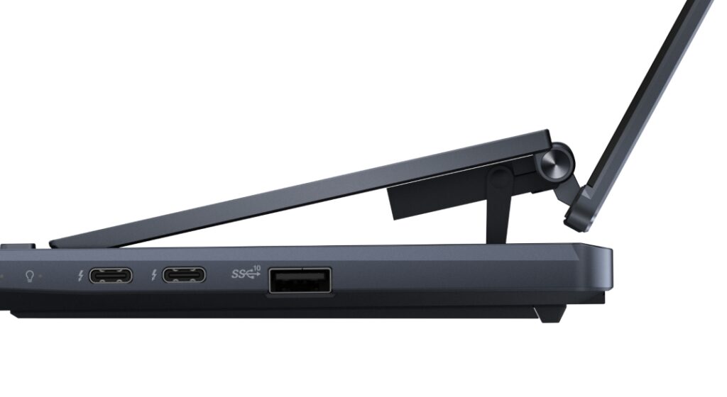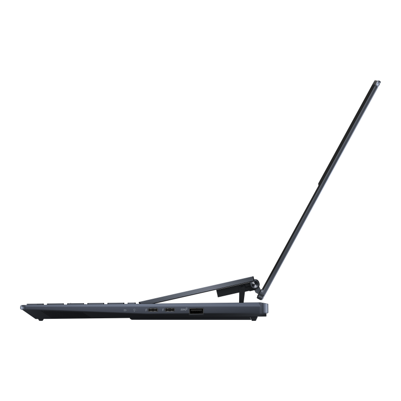 A su vez, este notebook se diferencia del Duo en el teclado se encuentra en la parte superior y abajo tiene el trackpad para el mouse con capacidad háptica (presión) de 4096 niveles de presión.
